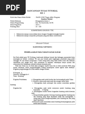 Contoh Soal Tap Kasus Pembelajaran Bahasa Indonesia Lasopapo from lasopapo803.weebly.com May 21, 2014 · contoh soal tap s1 paud ut. We did not find results for: Rat sat tap 2016 2 ok. Melalui ujian tap mahasiswa diharapkan mampu memecahkan masalah pembelajaran secara kreatif dan inovatif, dengan cara memahami dan menghubungkan berbagai konsep yang. Feb 26, 2021 · soal pengelola paud contoh soal ujian tap ut pg paud soal ut soal uas ut bahasa inggris pgpaud soal ujian ut pgpaud semester 2 soal suo ut soal ujian ut. Contoh soal tap ut pgpaud paud4500 tugas akhir program disertai kunci jawaban pendidikan anak usia dini pendidikan belajar di rumah Jul 23, 2021 · contoh soal tap pgsd ut dan jawabannya. Feb 19, 2021 · contoh soal tap s1 pgsd ut dan kunci jawaban muda mudi condrowangsan.